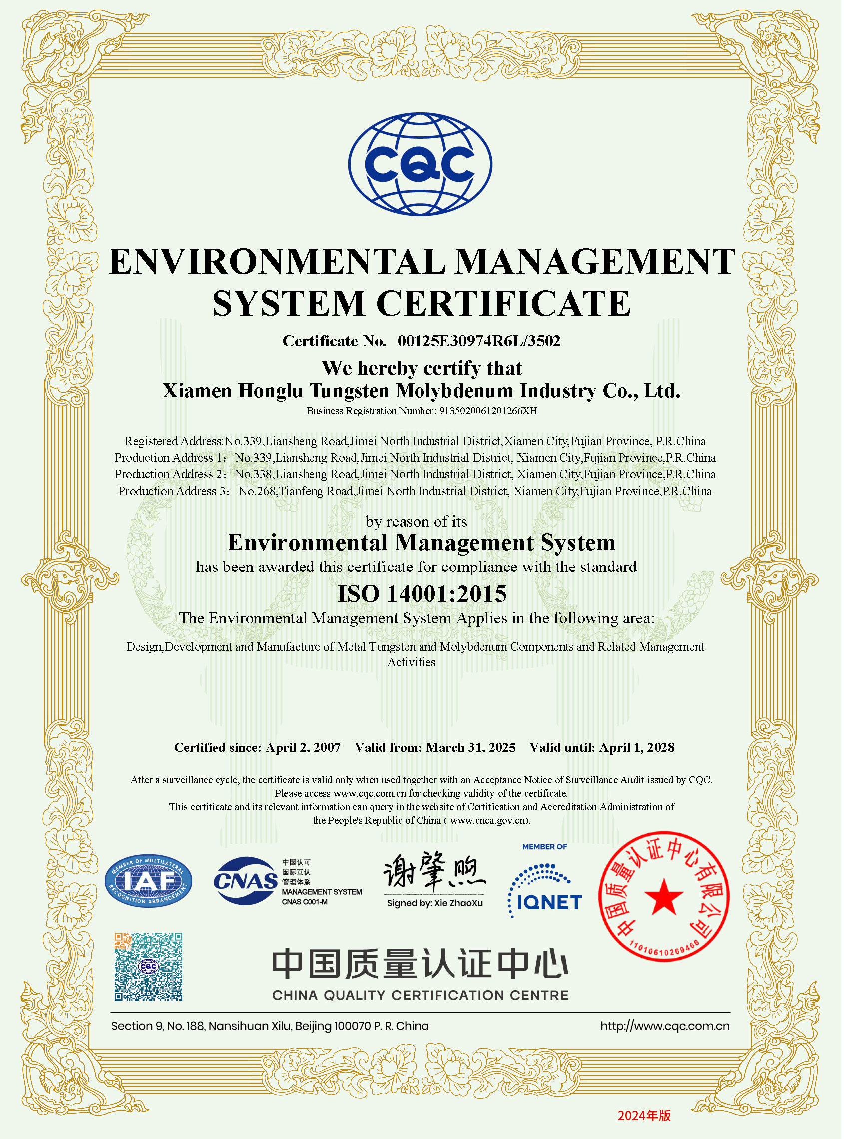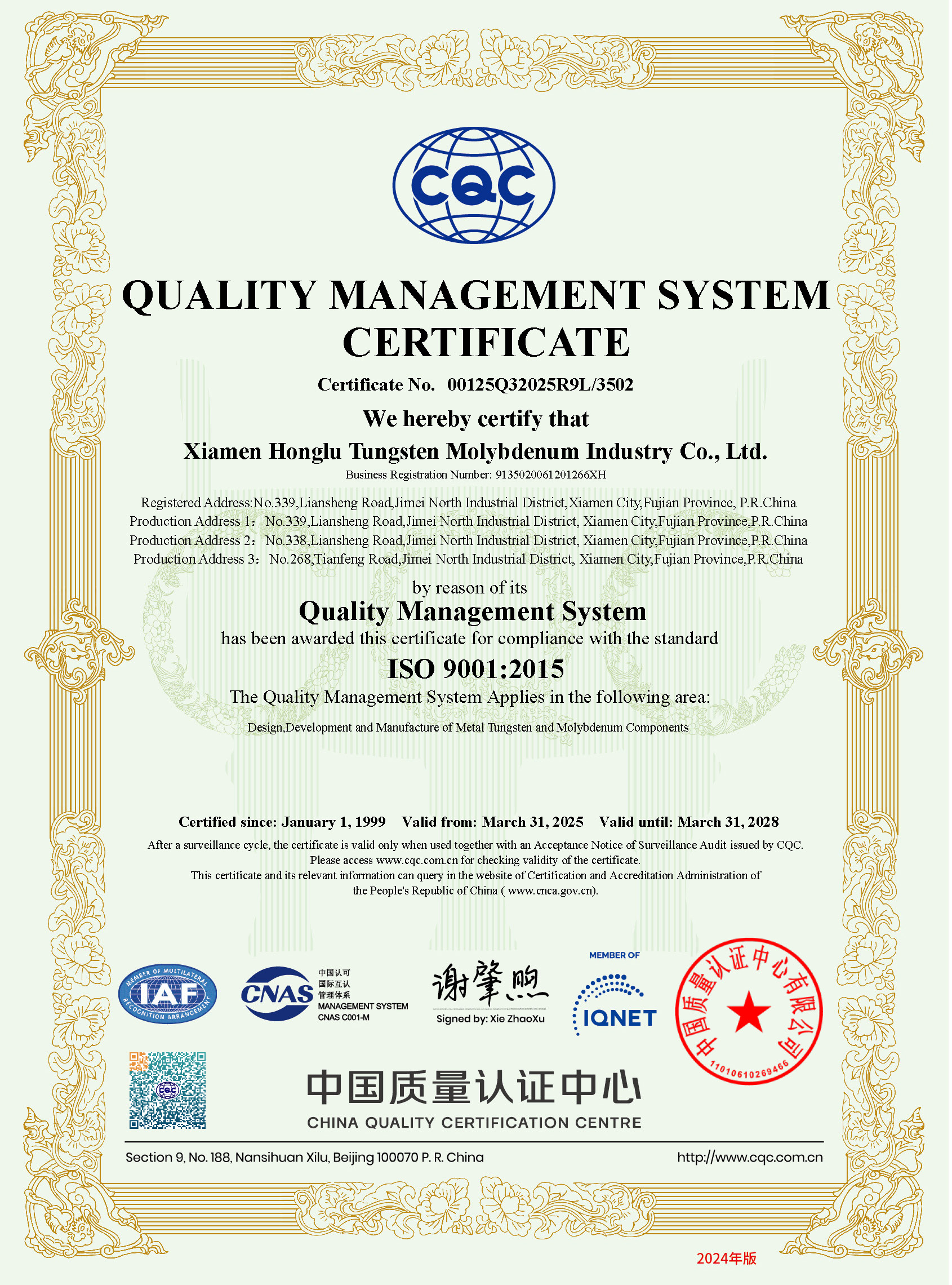 xiamen honglu focuses on the development of new tungsten and molybdenum products and exploitation of new applications. relying on the advantage of xiamen tungsten co., ltd on complete tungsten processing industry chain of “tungsten mine - smelting - deep processing”, the company adheres to the market-oriented, quality at its core, technological progress and innovation as the means, standardizes enterprise management, improves enterprise system, carries forward the enterprise spirit of "unity, diligence, innovation, efficiency, perseverance" and builds "the international, leading, professional w/mo and other powder metallurgical products supplier ".